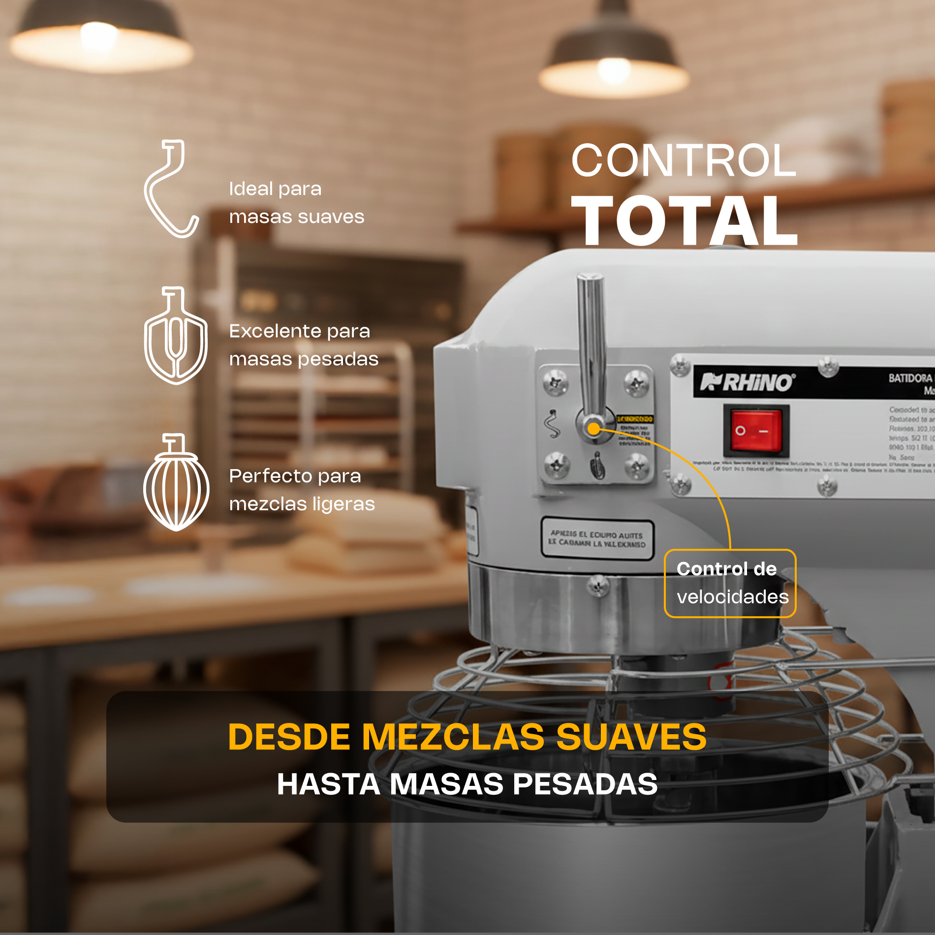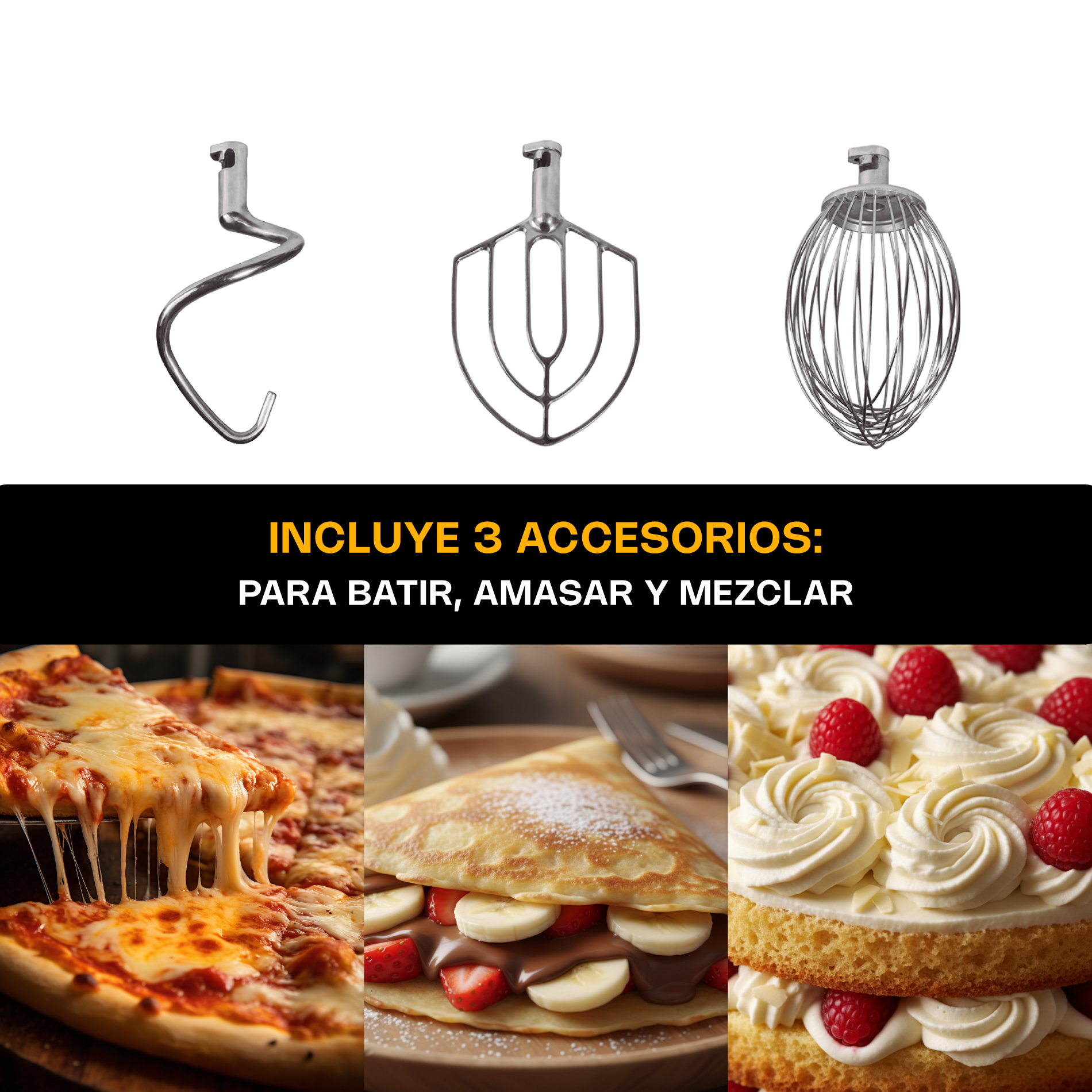 - Perfecta para: Amasar, mezclar y batir.