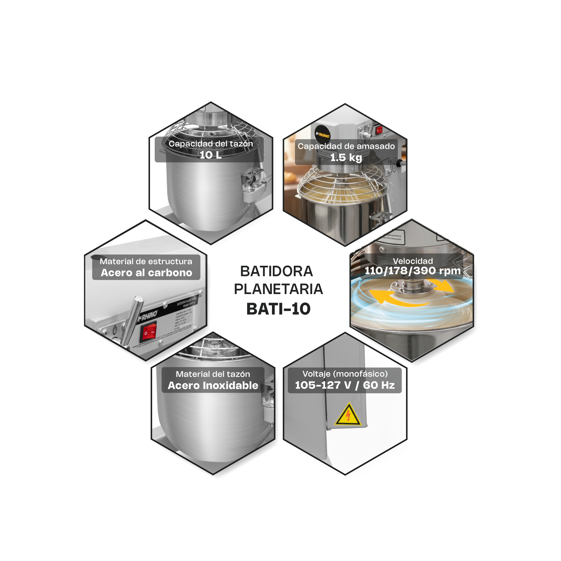 - Tecnología de Giro: Los accesorios giran sobre su propio eje mientras giran alrededor del tazón, asegurando una mezcla uniforme.
