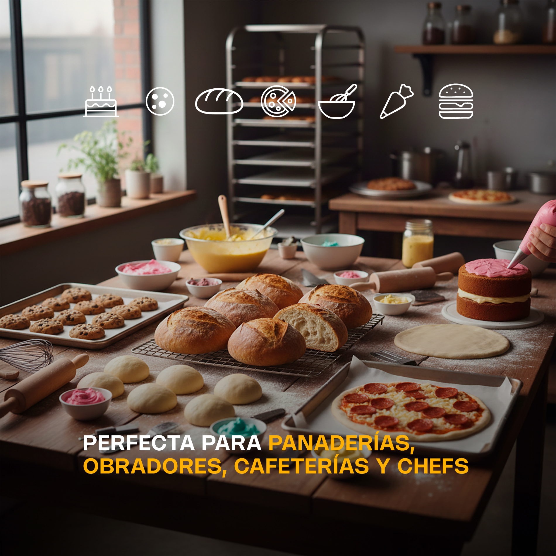 - Ideal para: Panaderías, pastelerías, restaurantes y cocinas industriales.
