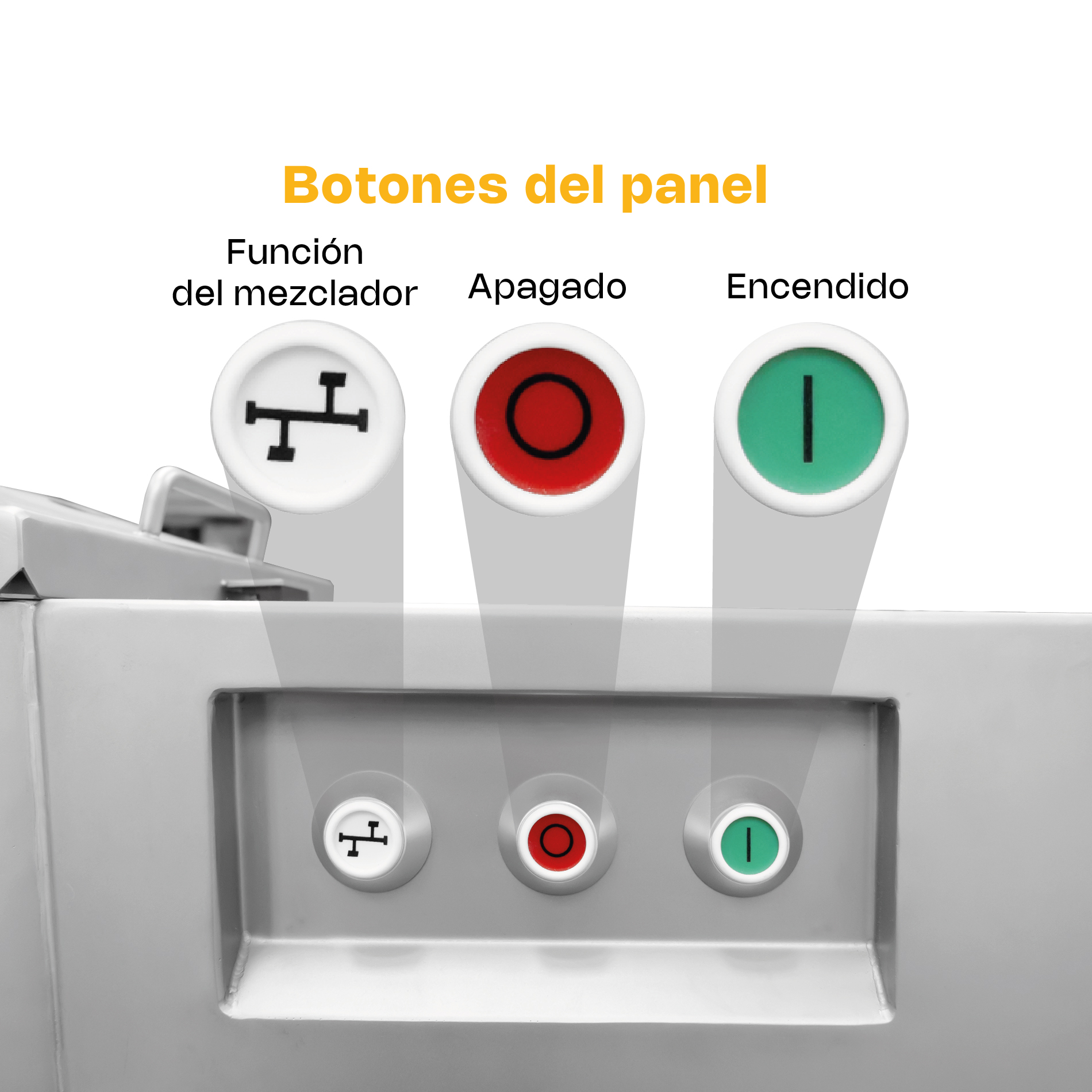 - Sistema de mezclado independiente con motor de 1 HP, asegurando una distribución homogénea de ingredientes, mejorando la textura y calidad del producto final.
