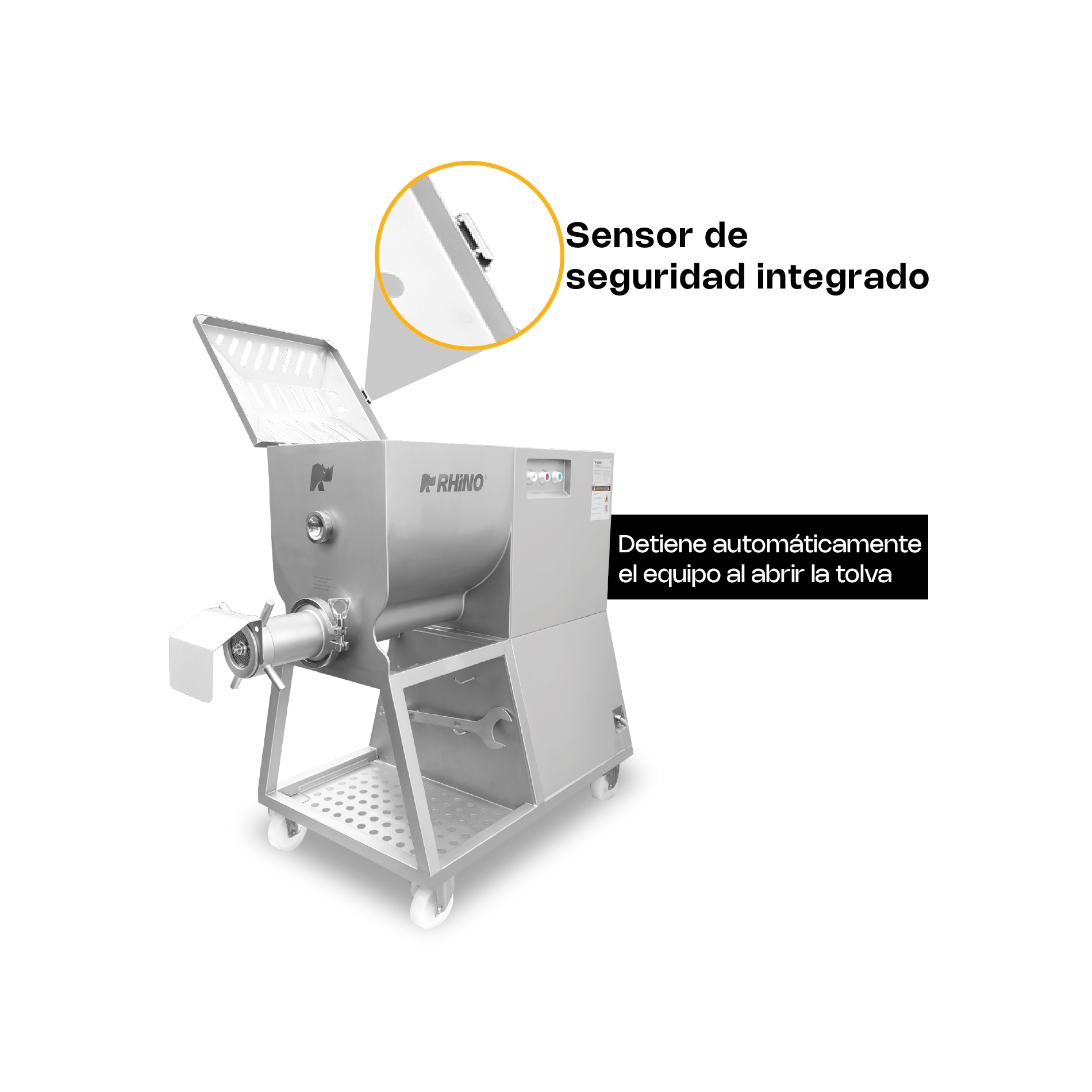 - Sensor de seguridad integrado que detiene automáticamente el equipo al abrir la tolva, evitando accidentes y garantizando una operación segura para el usuario.