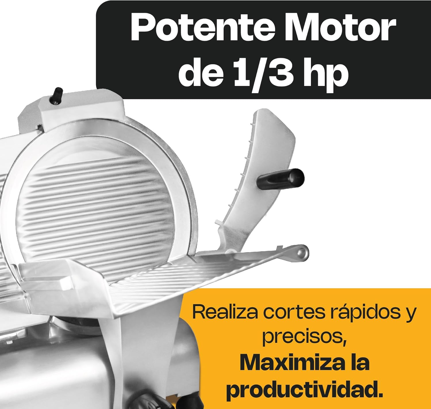 aluminio anodizado, cuchilla de acero al cromo duro, motor de 1/3 hp.